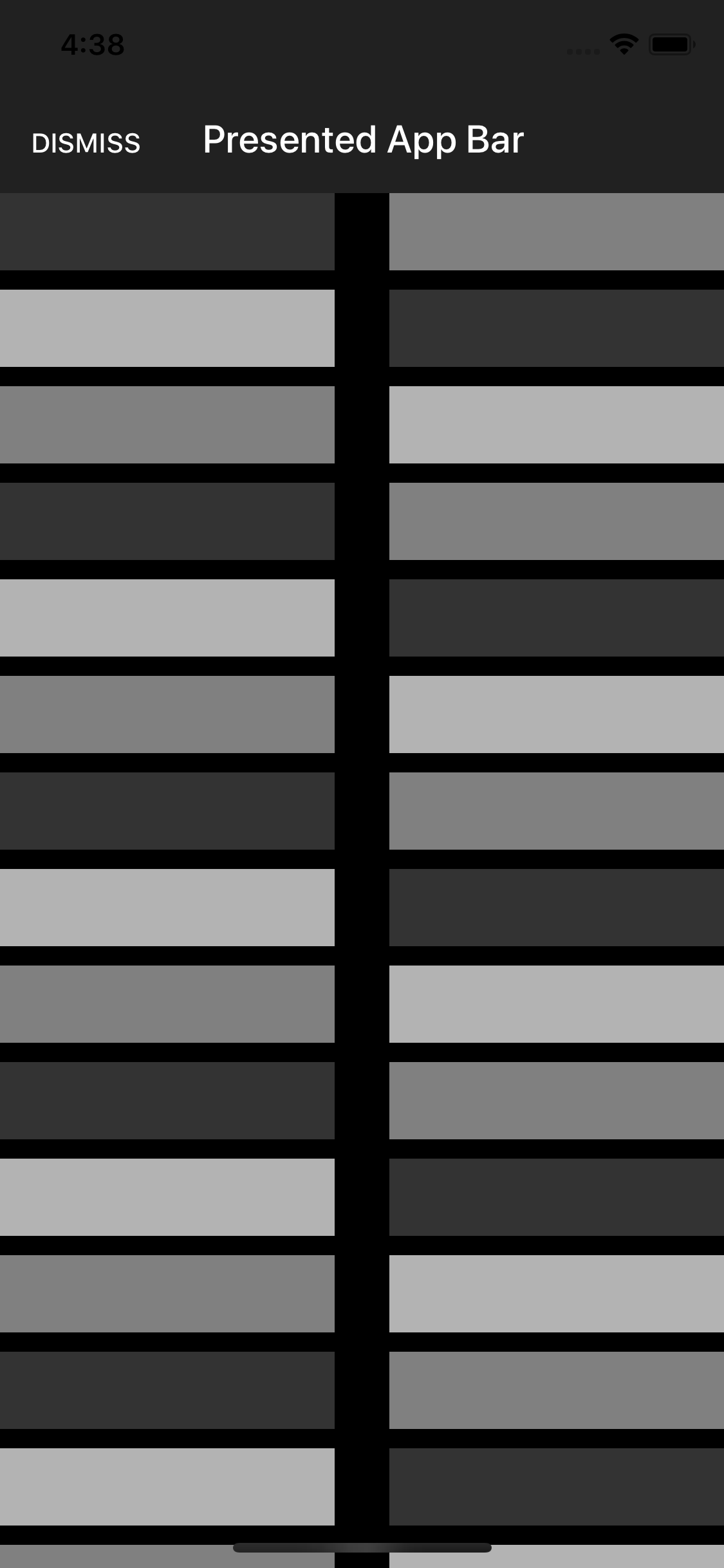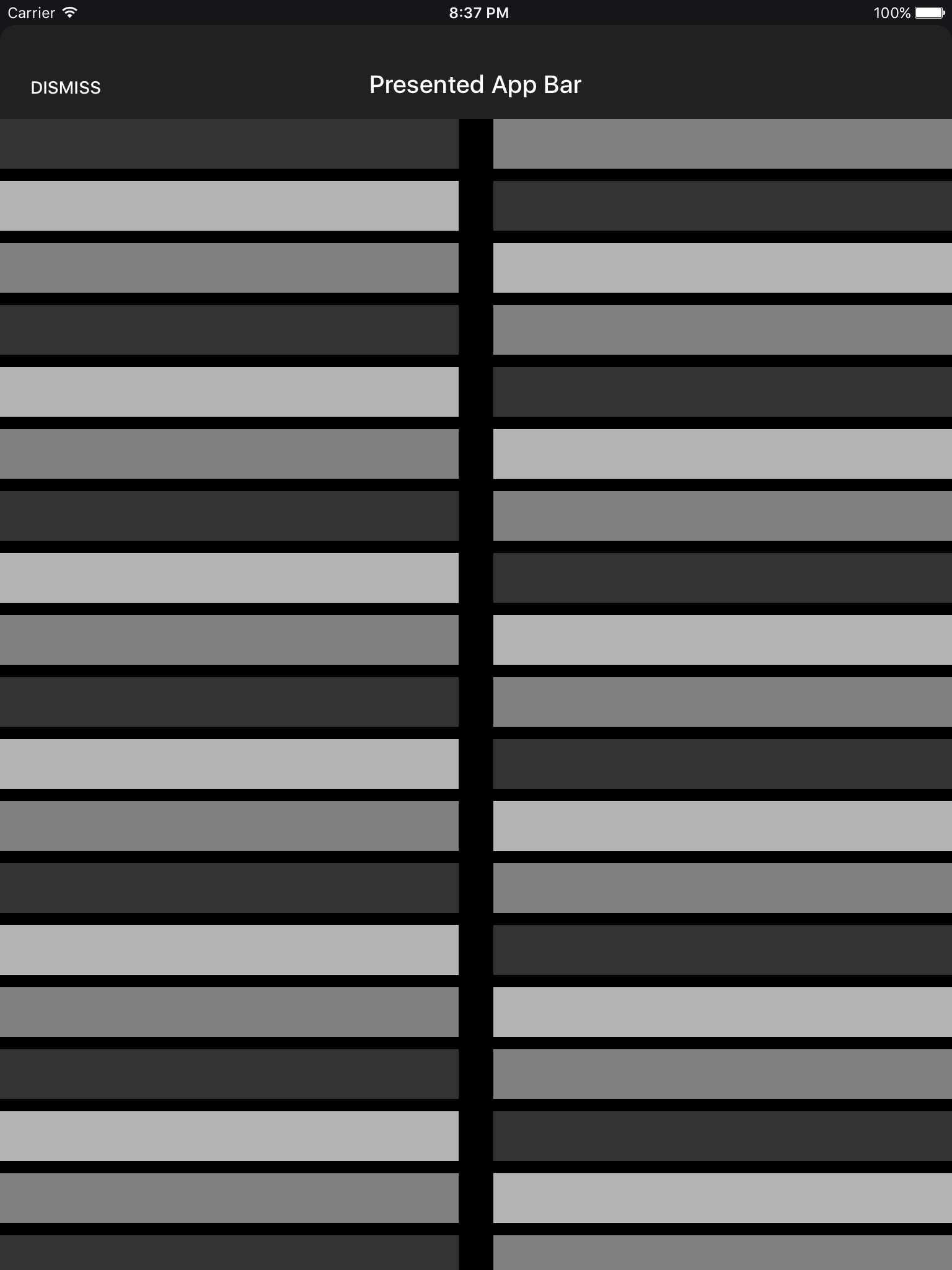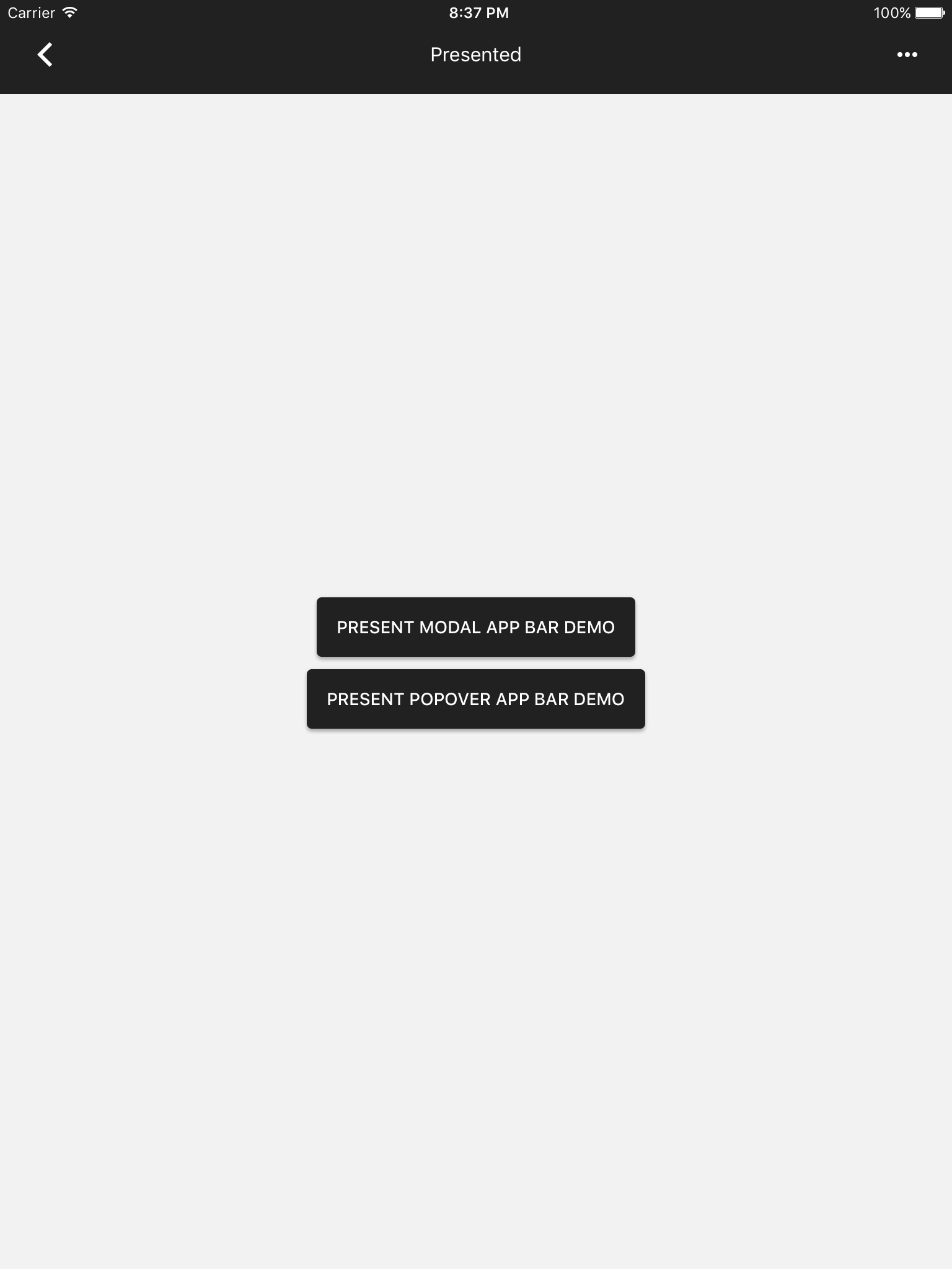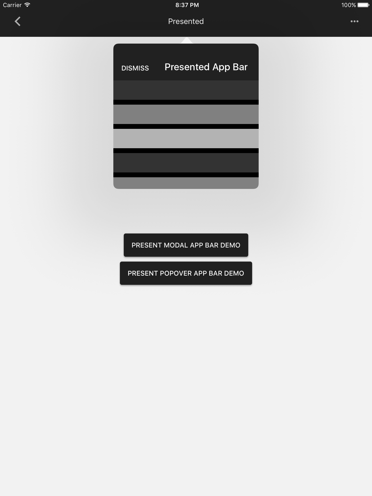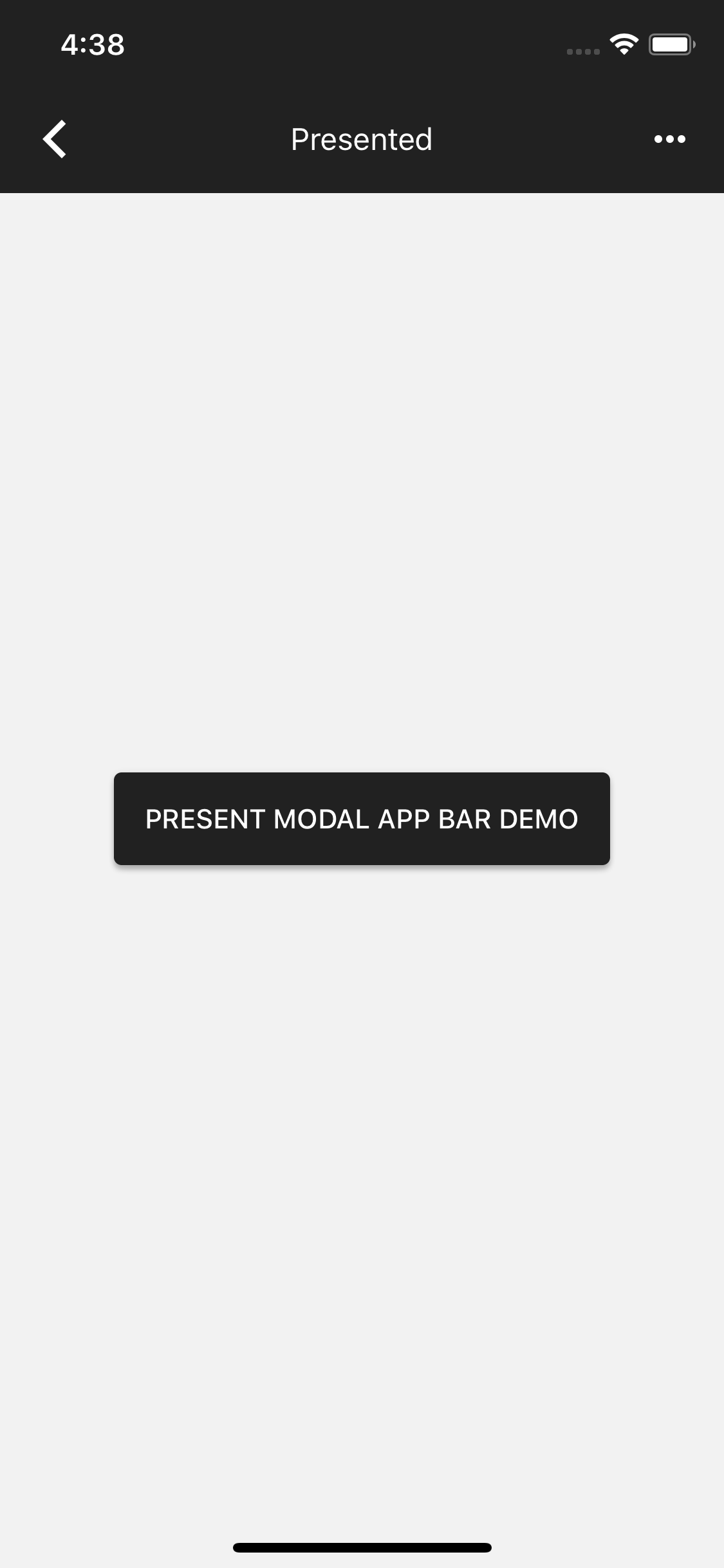 * AppBar -> Presented (This example does not use the app theme so I was able to set the style directly)