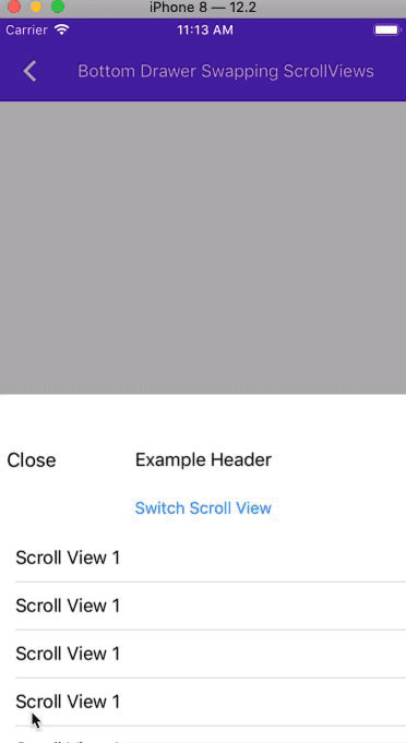 In order to test the before and after behavior edit `BottomDrawerInfiniteScrollingExample.swift` as outlined below.