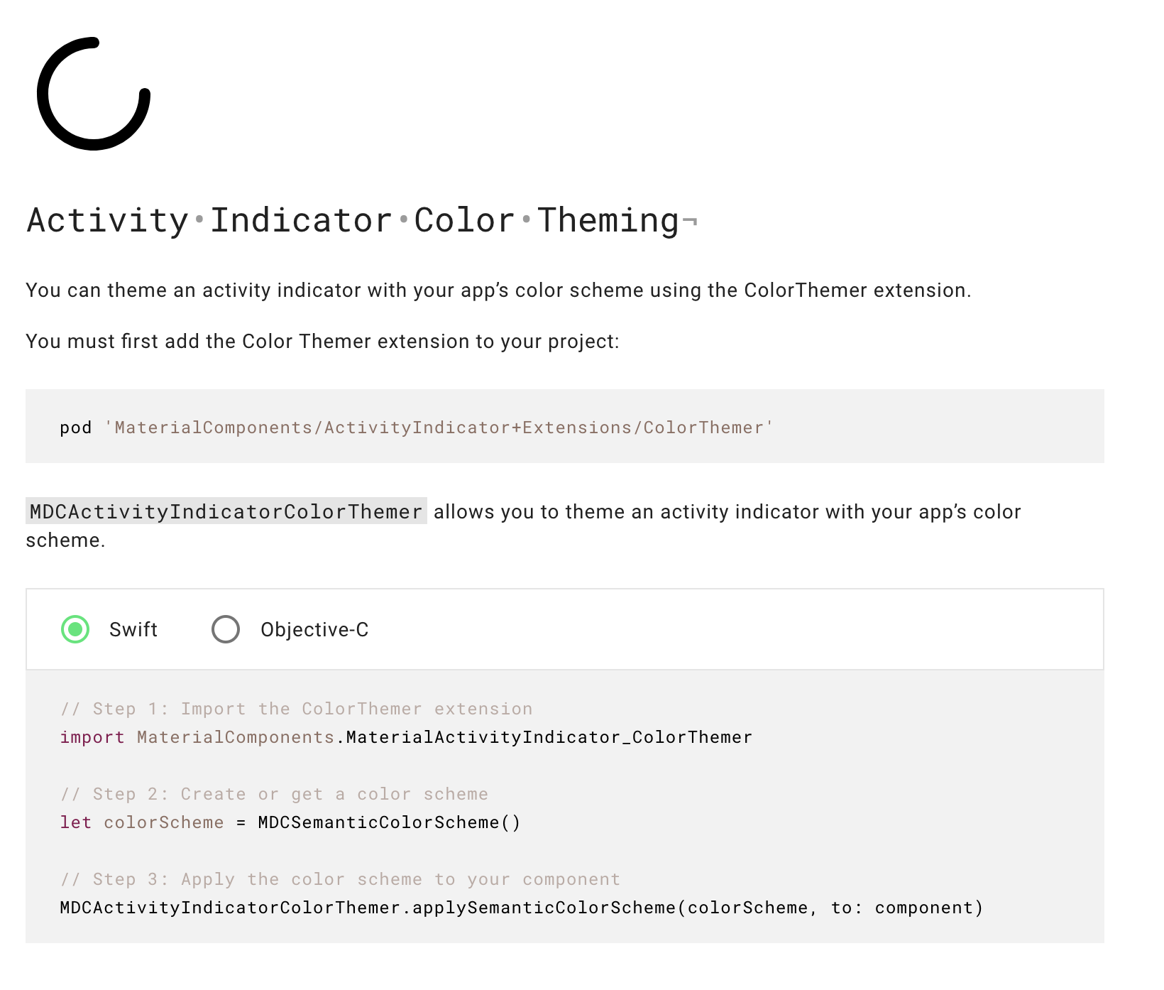 [ActivityIndicator] Apply the color themer template to the docs. ( #3556 )