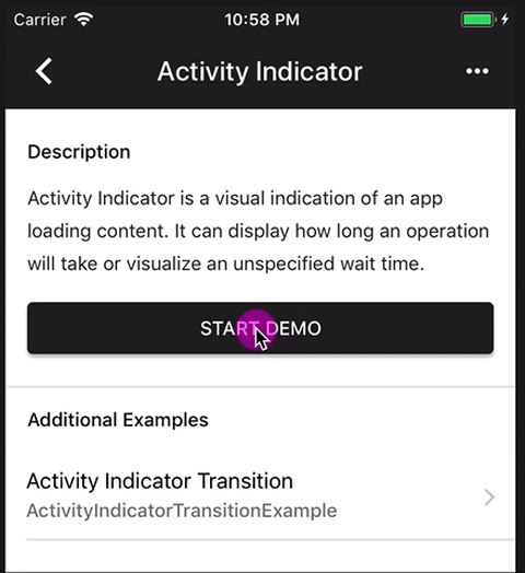 * Added example for activity indicator
