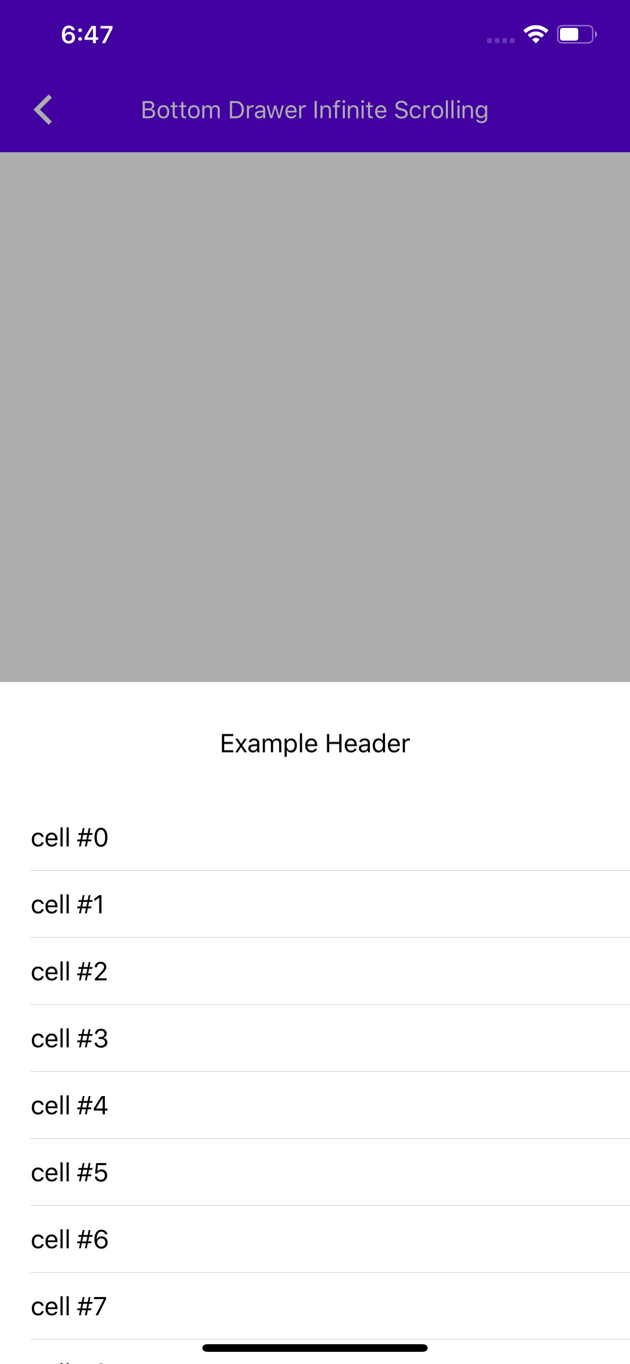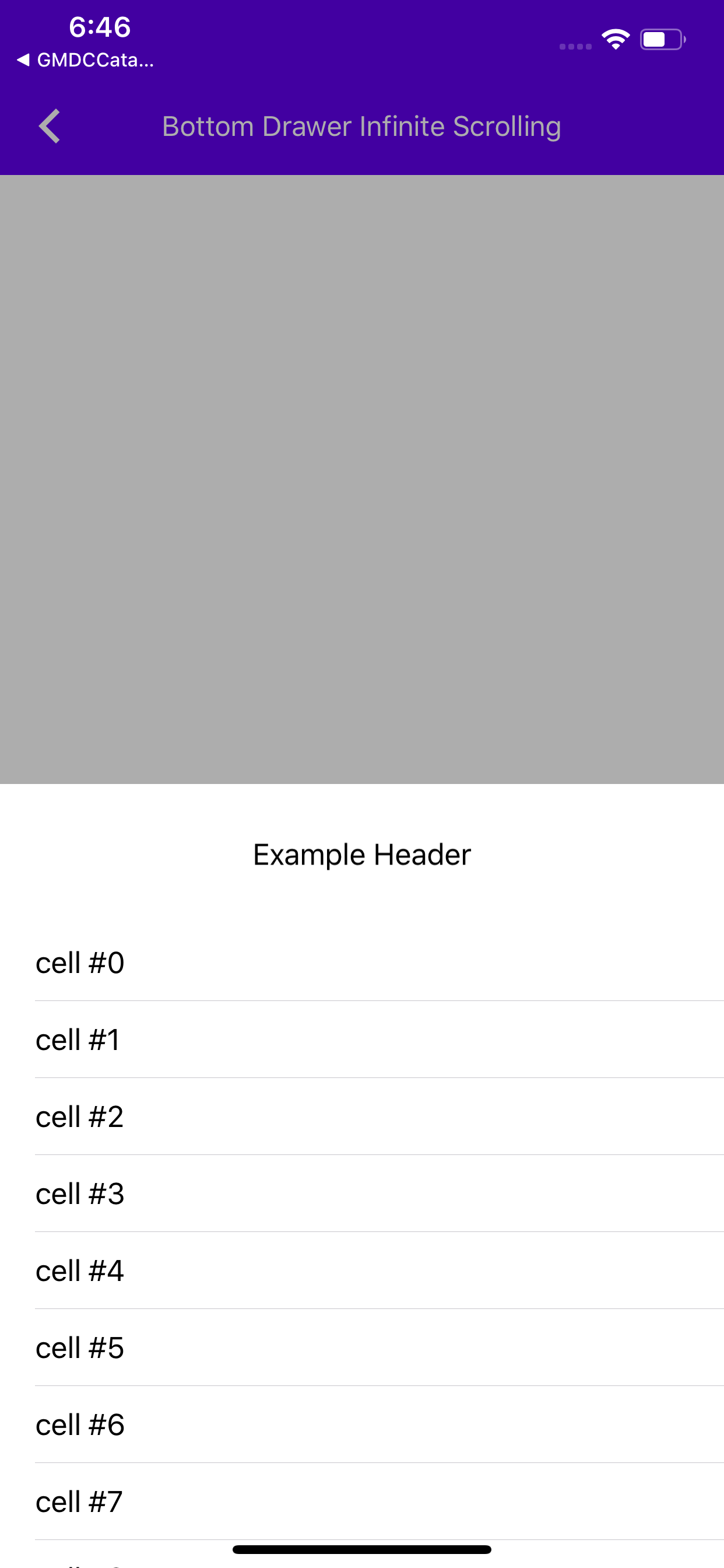 In order to test the before and after behavior edit `BottomDrawerInfiniteScrollingExample.swift` as outlined below.