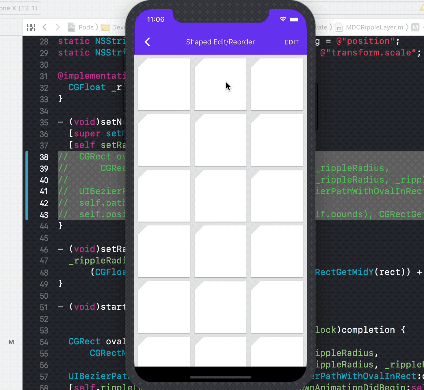 2. When an MDCRippleLayer exists and needs to be laid out again, it needs to recalculate the ripple layer's position and path. This can happen as an example during a ripple animation when an orientation change occurs. This can also happen when there is a ripple overlay that isn't transient is on a surface and there is an orientation change.